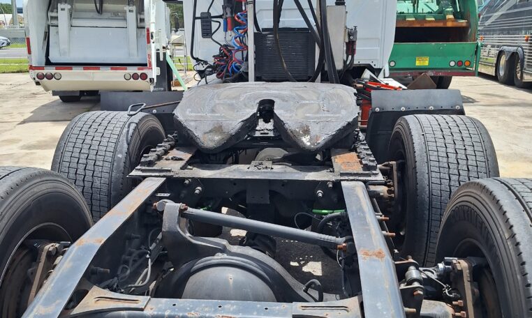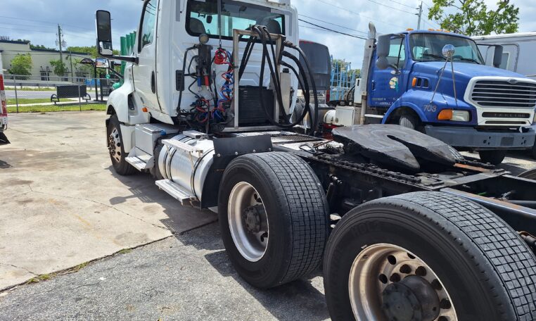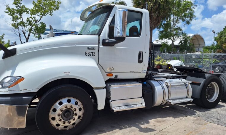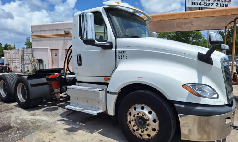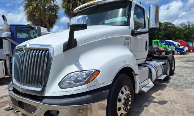 2018 International Day cab LT625, Cummins X15, 475 HP, Eaton 10 speed automatic trans., Meritor 40k lbs. rear end, 3:25 ratio, air ride susp., 189 WB, air slide, 5th wheel, single horizontal exhaust, 100 gal. alum. tank, engine brakes, air brakes, 295 x 75 x 22.5 tires, aluminum wheels, White, 504,454 miles, has wet line system.